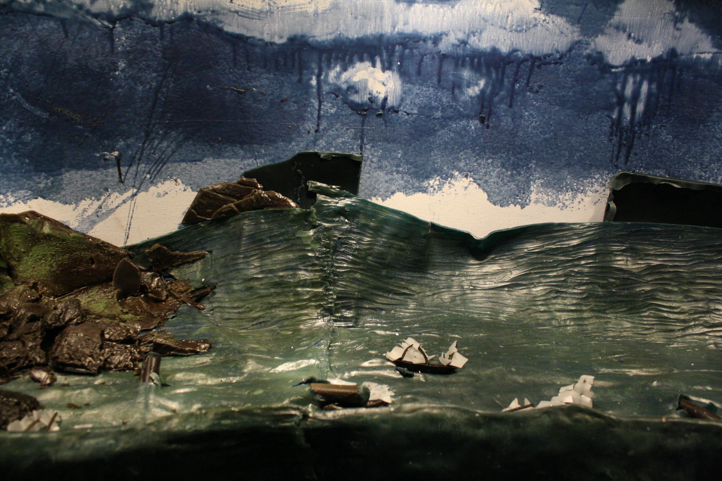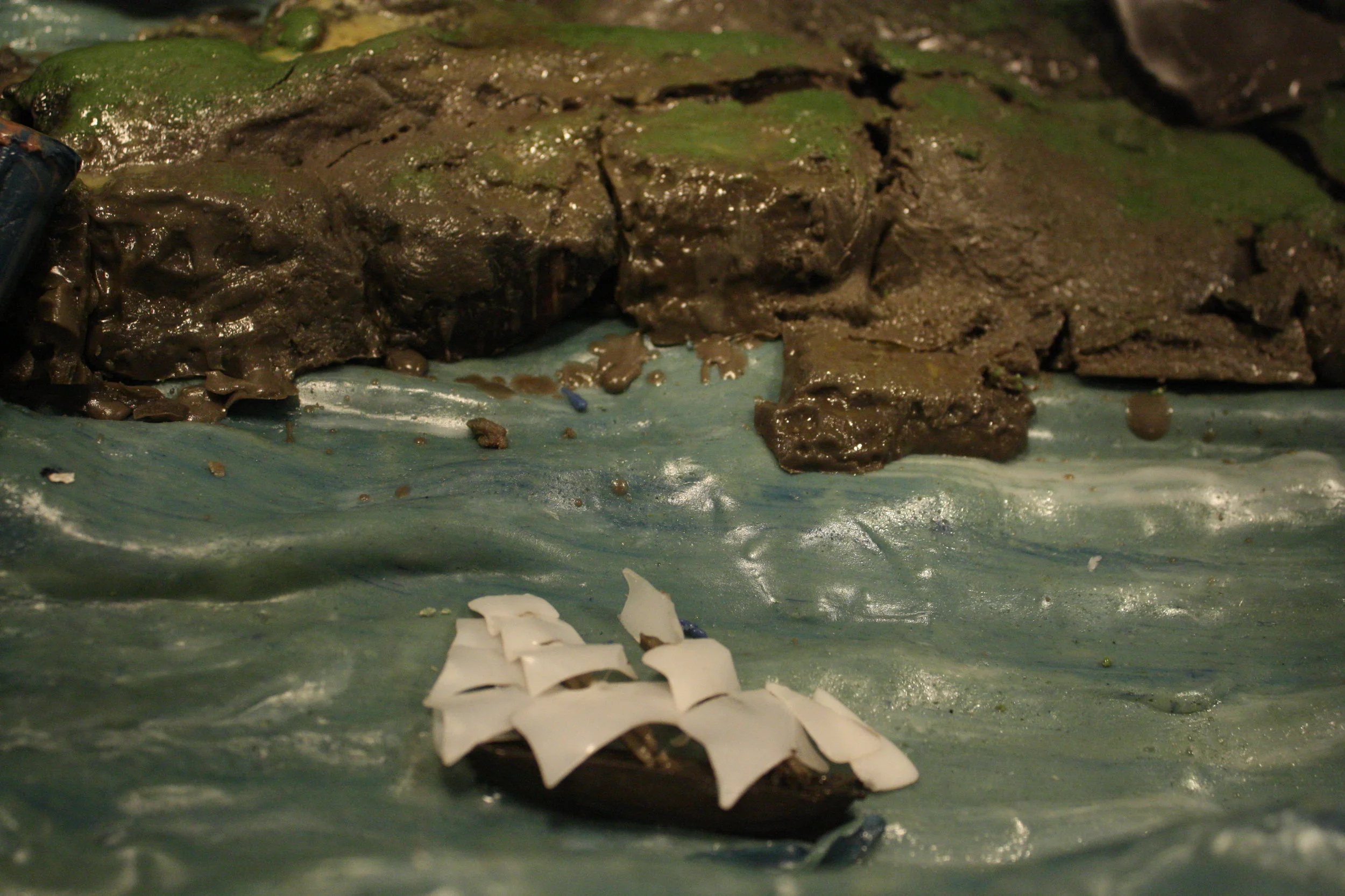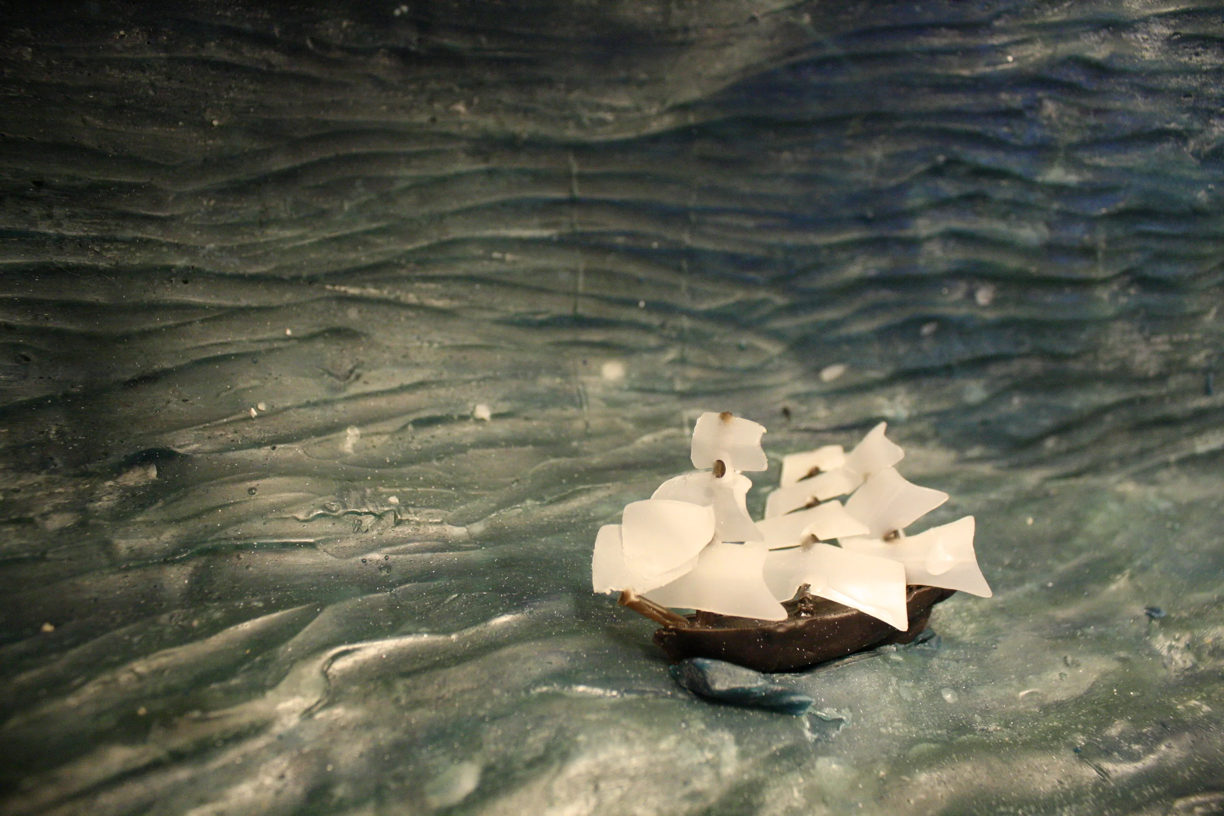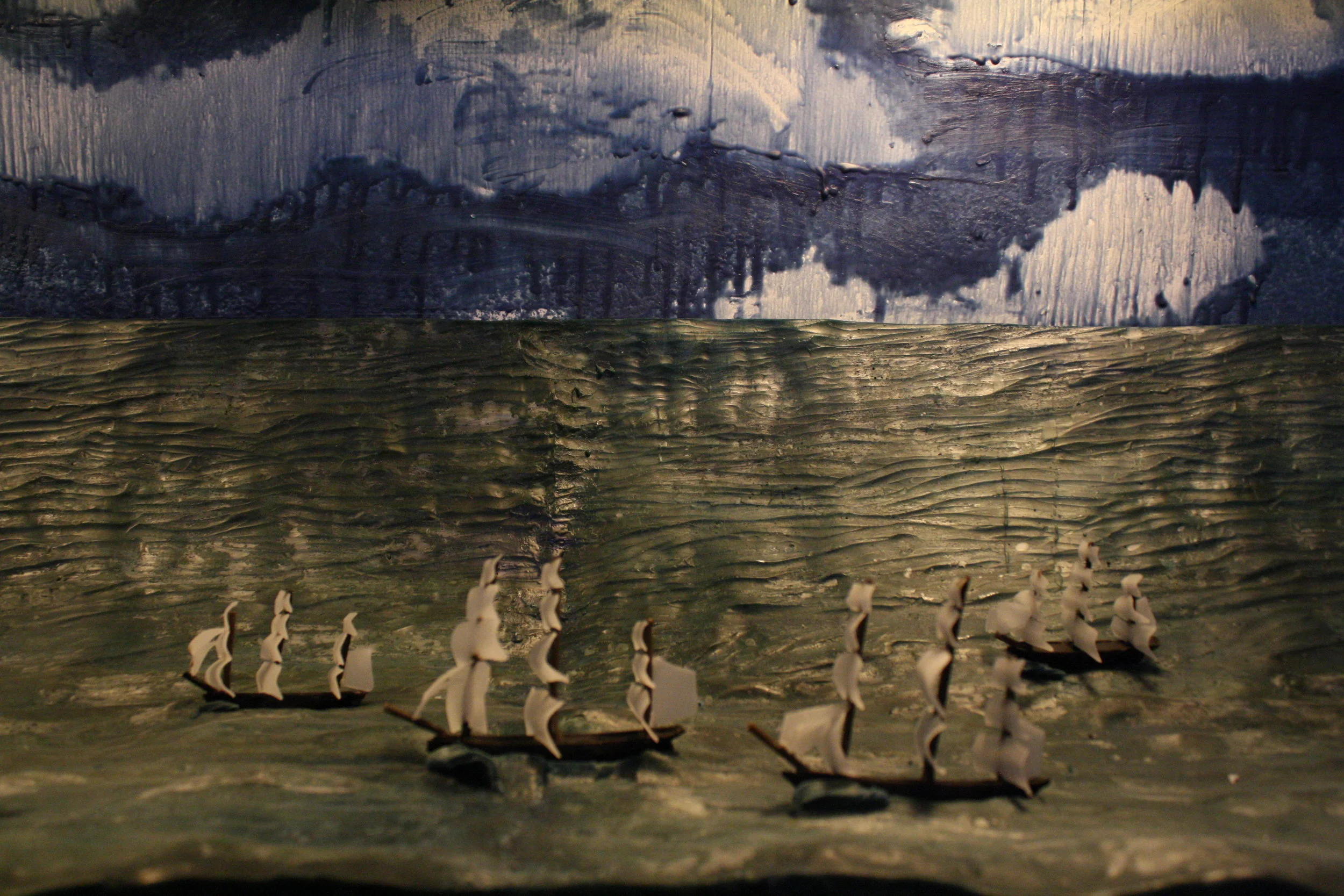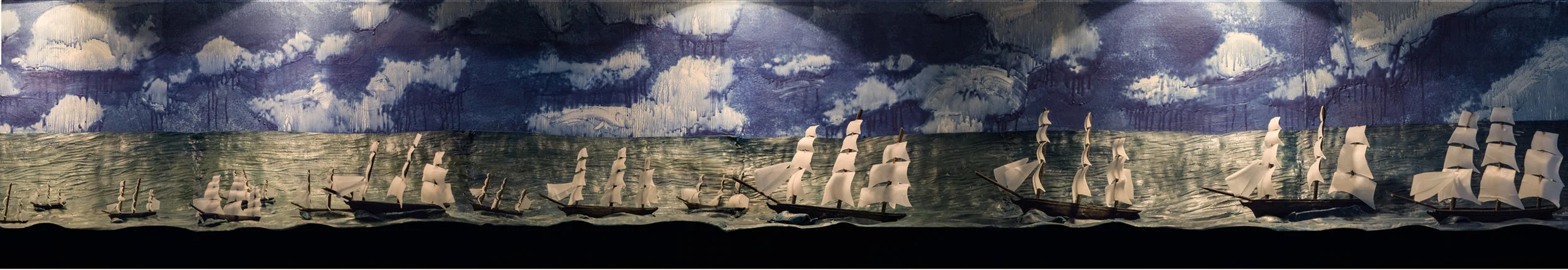 Frontier presents a vision of exploration and conquest during the Age of Imperialism in the Americas. The installation takes the form of an immersive panoramic diorama built out of beeswax and lit with heat lamps. Ephemeral by nature, this material will experiences melting, casting, forming and finally melting again during the course of this exhibition. Frontier intends to both build and destroy historical notions of the past by creating museum quality dioramas and literally allowing them to melt away.