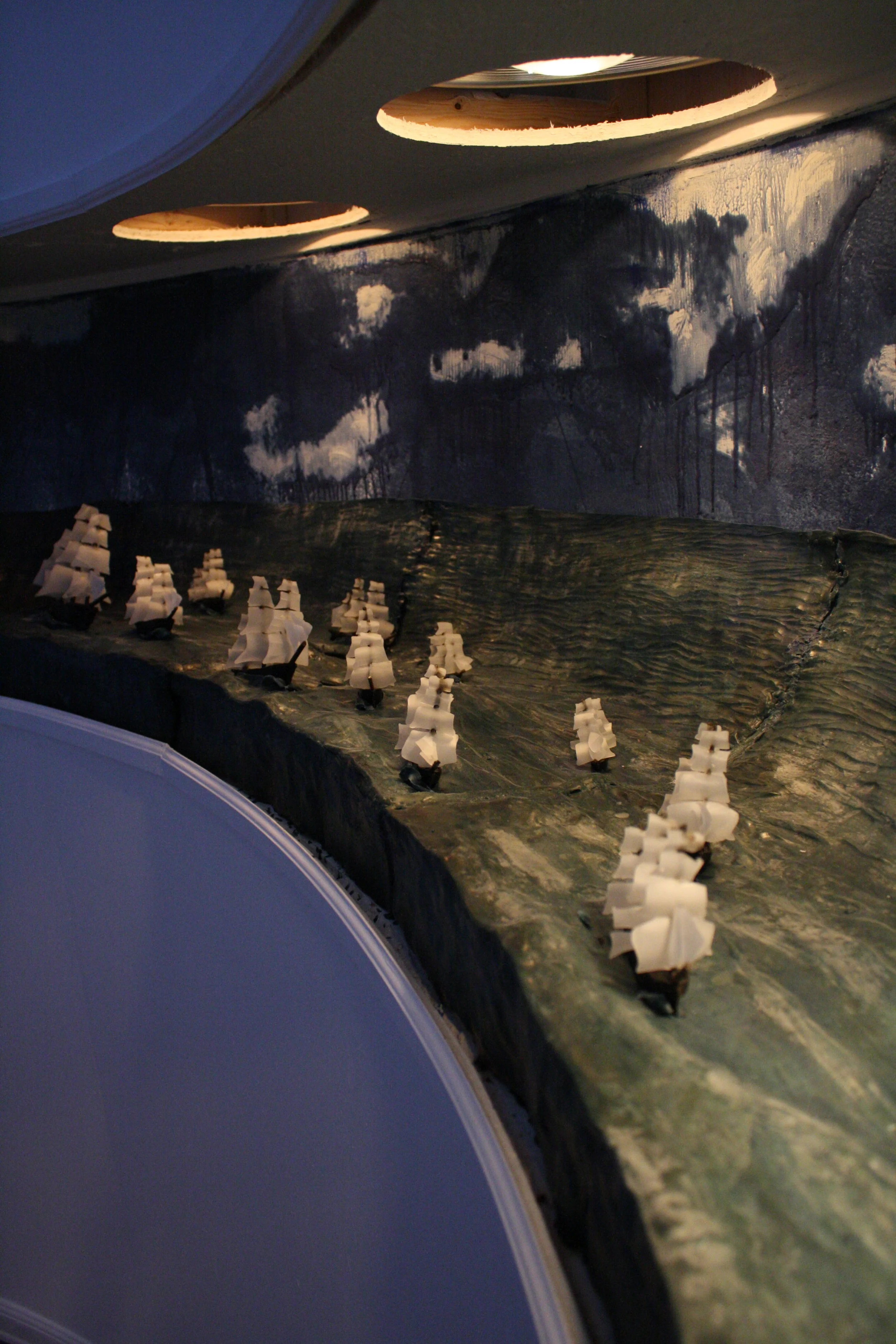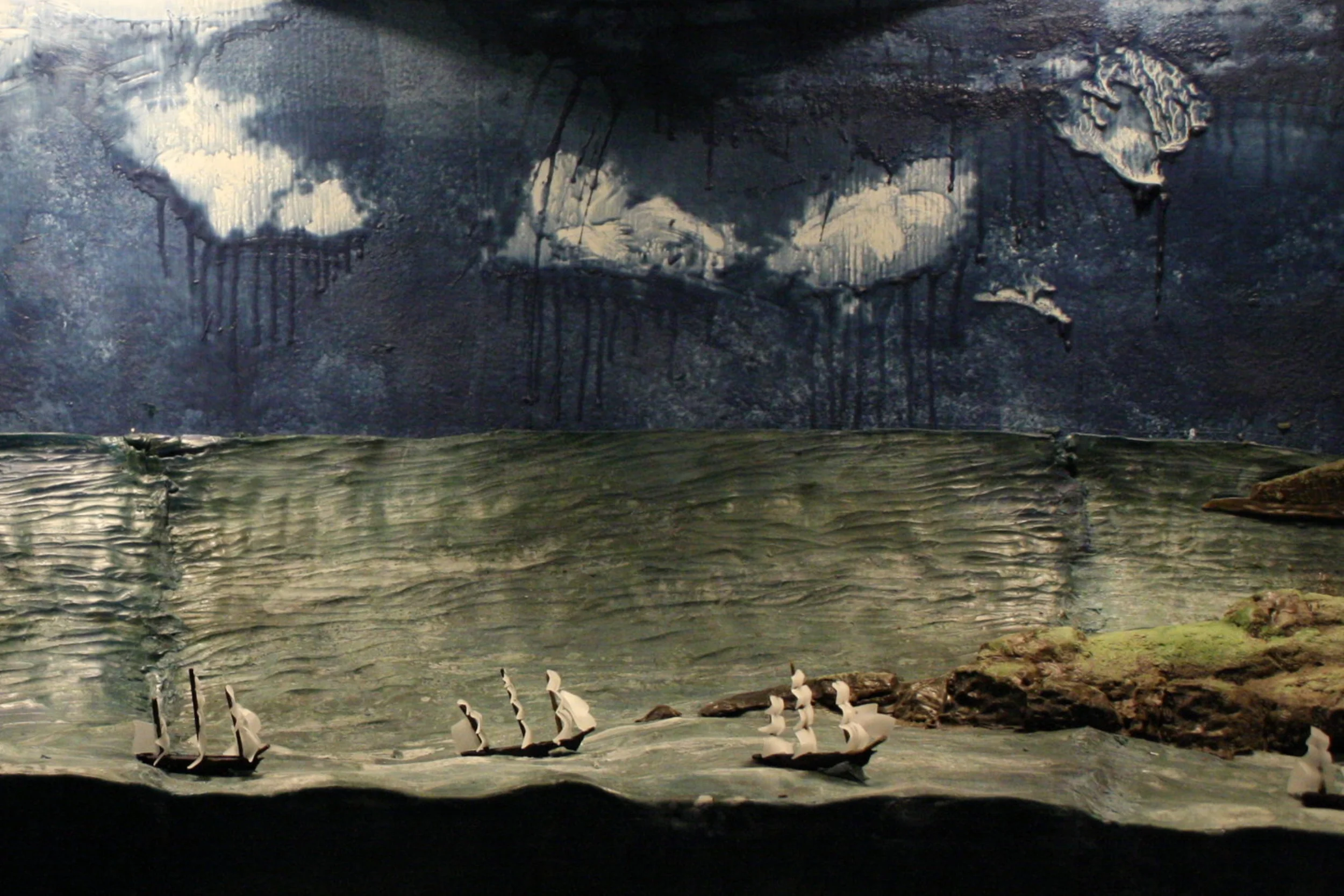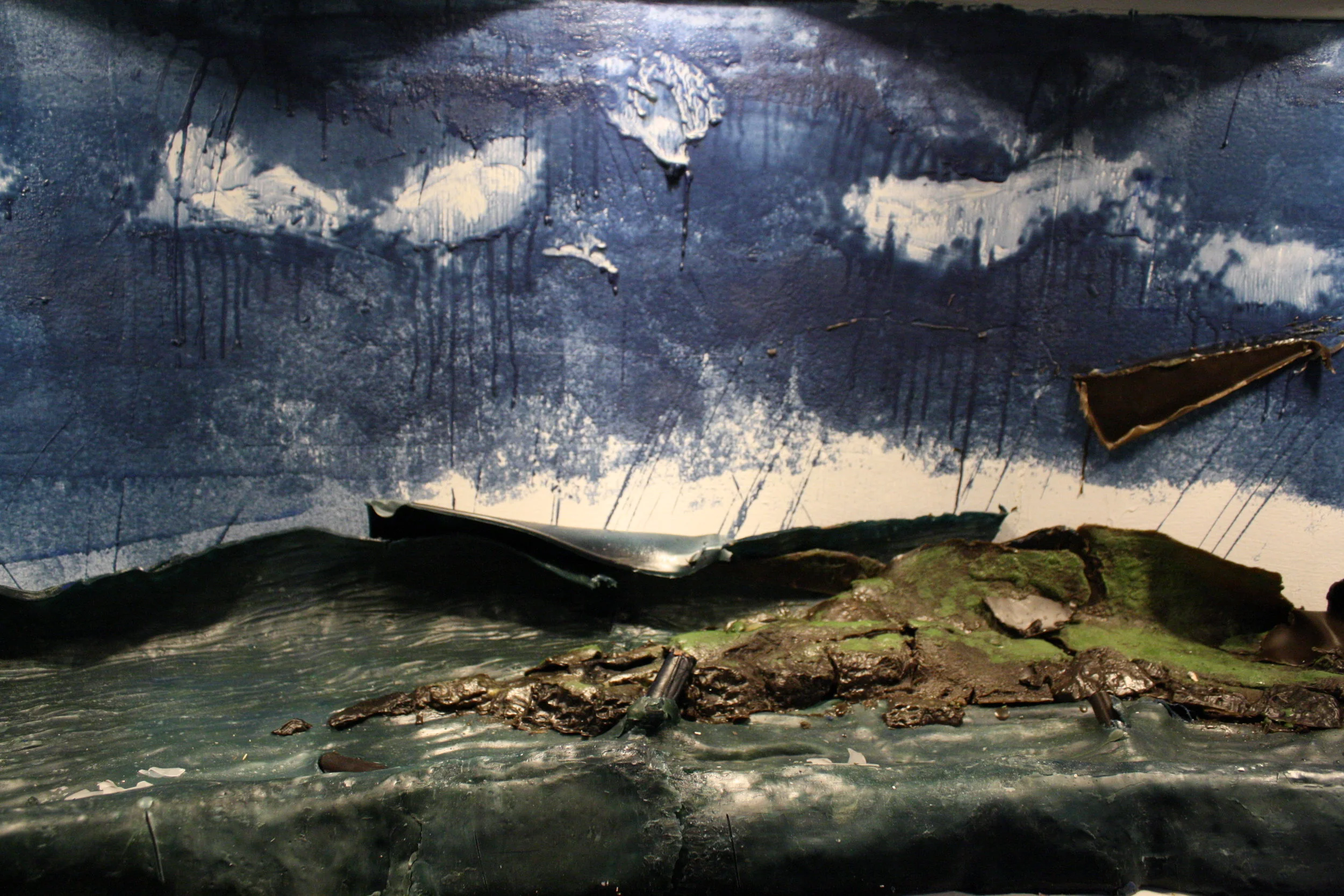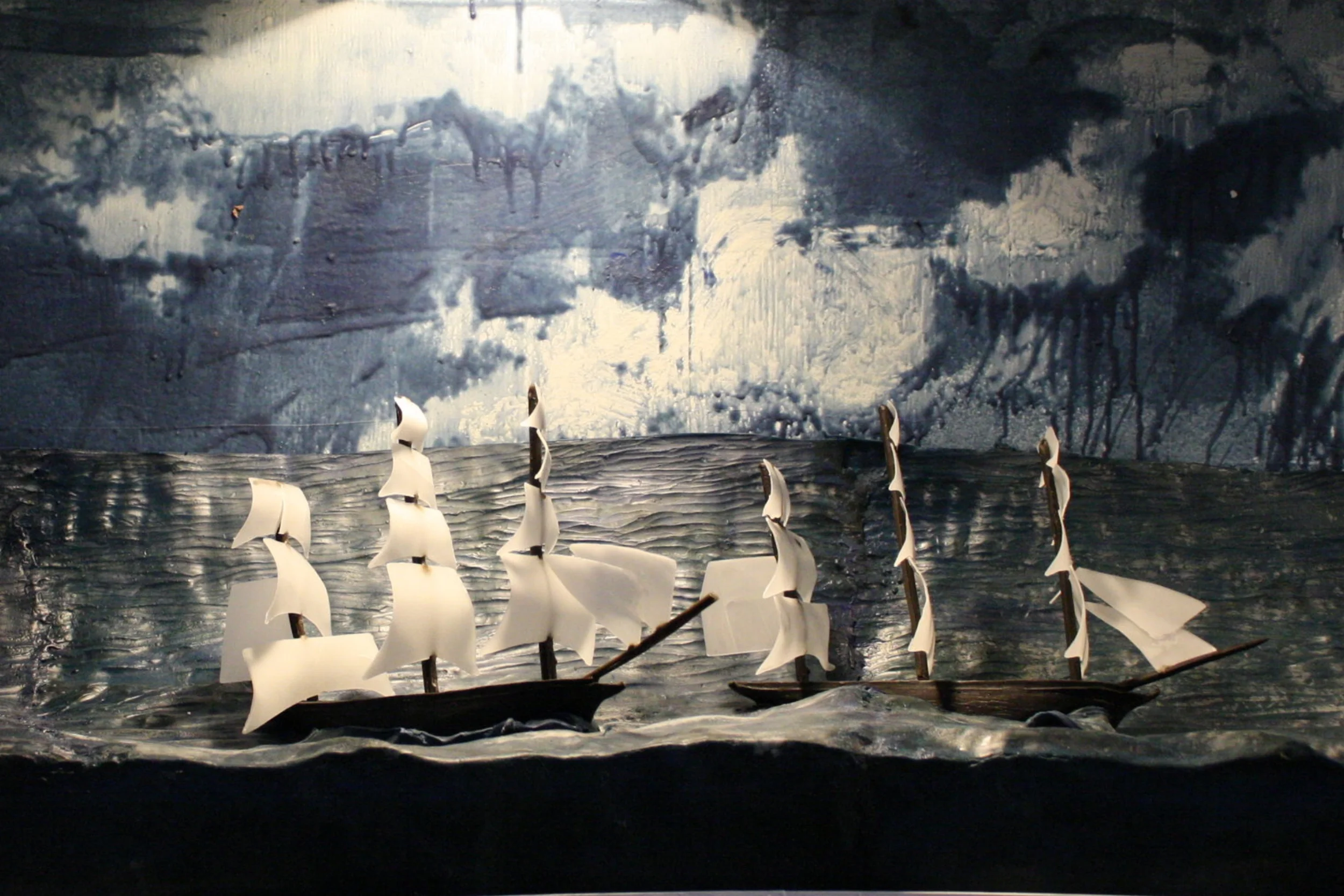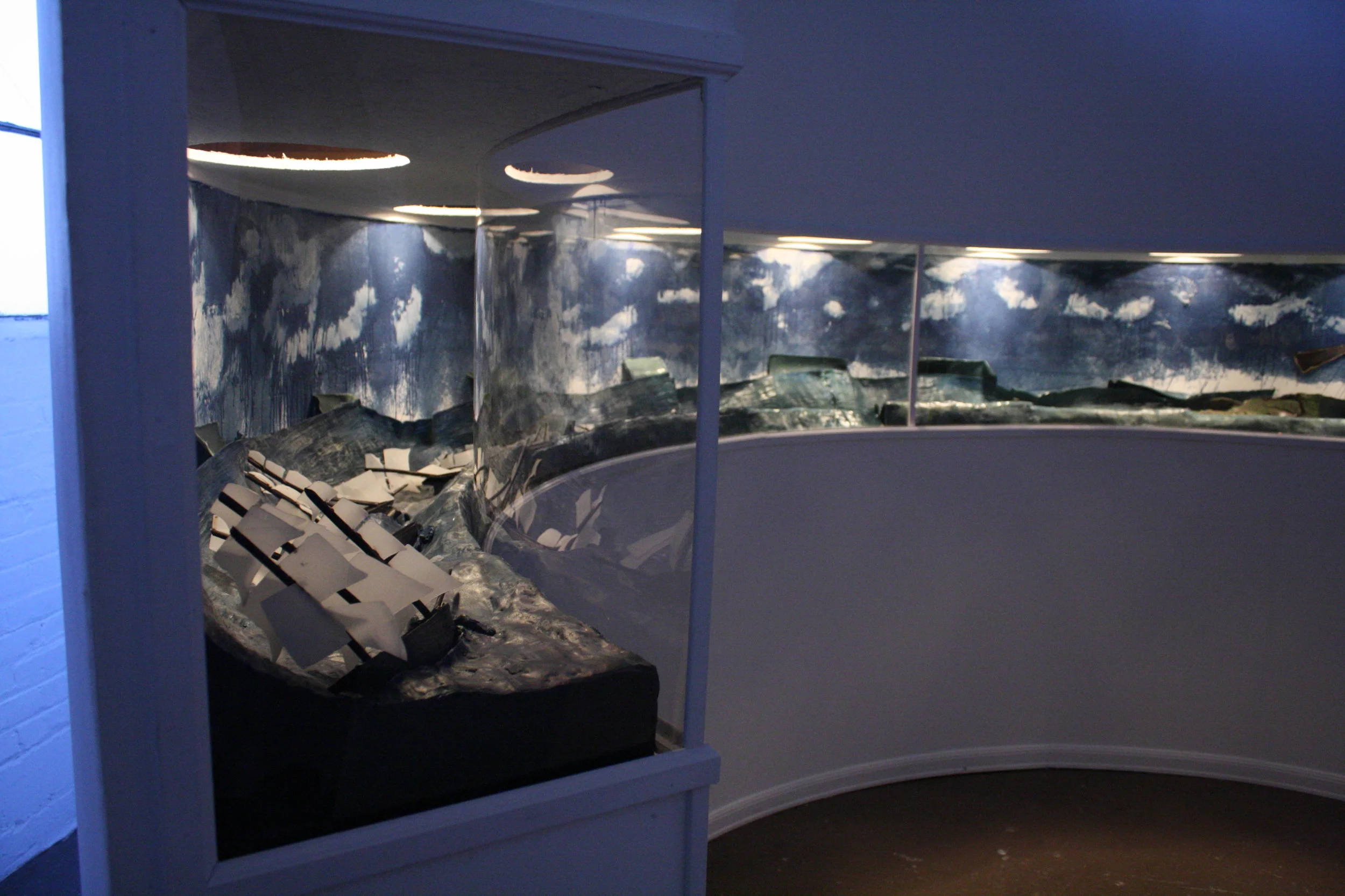 Frontier presents a vision of exploration and conquest during the Age of Imperialism in the Americas. The installation takes the form of an immersive panoramic diorama built out of beeswax and lit with heat lamps. Ephemeral by nature, this material will experiences melting, casting, forming and finally melting again during the course of this exhibition. Frontier intends to both build and destroy historical notions of the past by creating museum quality dioramas and literally allowing them to melt away.